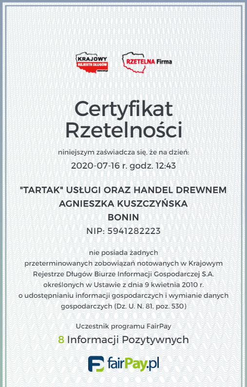 Nasz Tartak w Boninie funkcjonuje od 2000 roku. Przez ponad 25 lat działalności, osiągnęliśmy profesjonalny status w swojej branży, czego efektem jest grono zadowolonych klientów. Specjalizujemy się przede wszystkim w produkcji wiązarów dachowych. Wieloletnie doświadczenie poparte praktyką sprawiło, że firma postrzegana jest na lokalnym rynku jako profesjonalna oraz terminowa. Ogromny wpływ na ten fakt, mają pracownicy naszej firmy, którzy każdemu klientowi zapewniają profesjonalną obsługę i służą poradą co do wyboru odpowiednich produktów. Oprócz wspomnianych już wiązarów dachowych w stałej ofercie posiadamy również: łaty, kontrłaty oraz suszone komorowo elementy konstrukcyjne. Firma cały czas się rozwija i oferuje także usługę impregnacji ciśnieniowej.